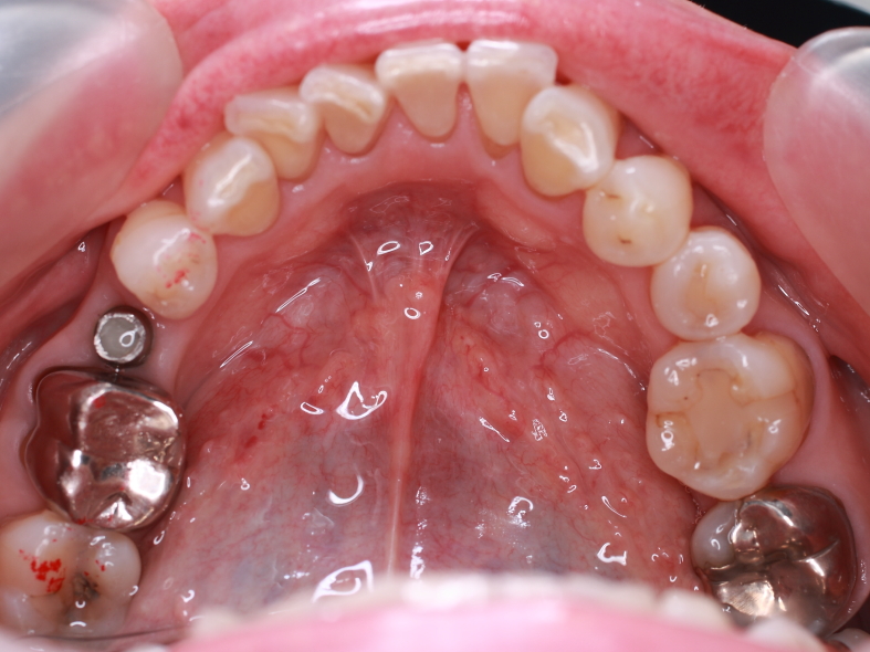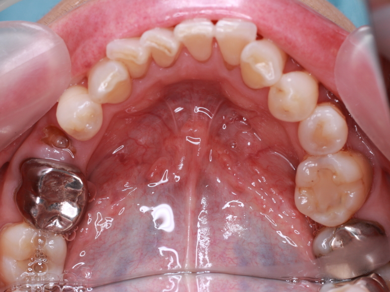 下顎左側小臼歯部、歯根破折により差し歯が脱離。